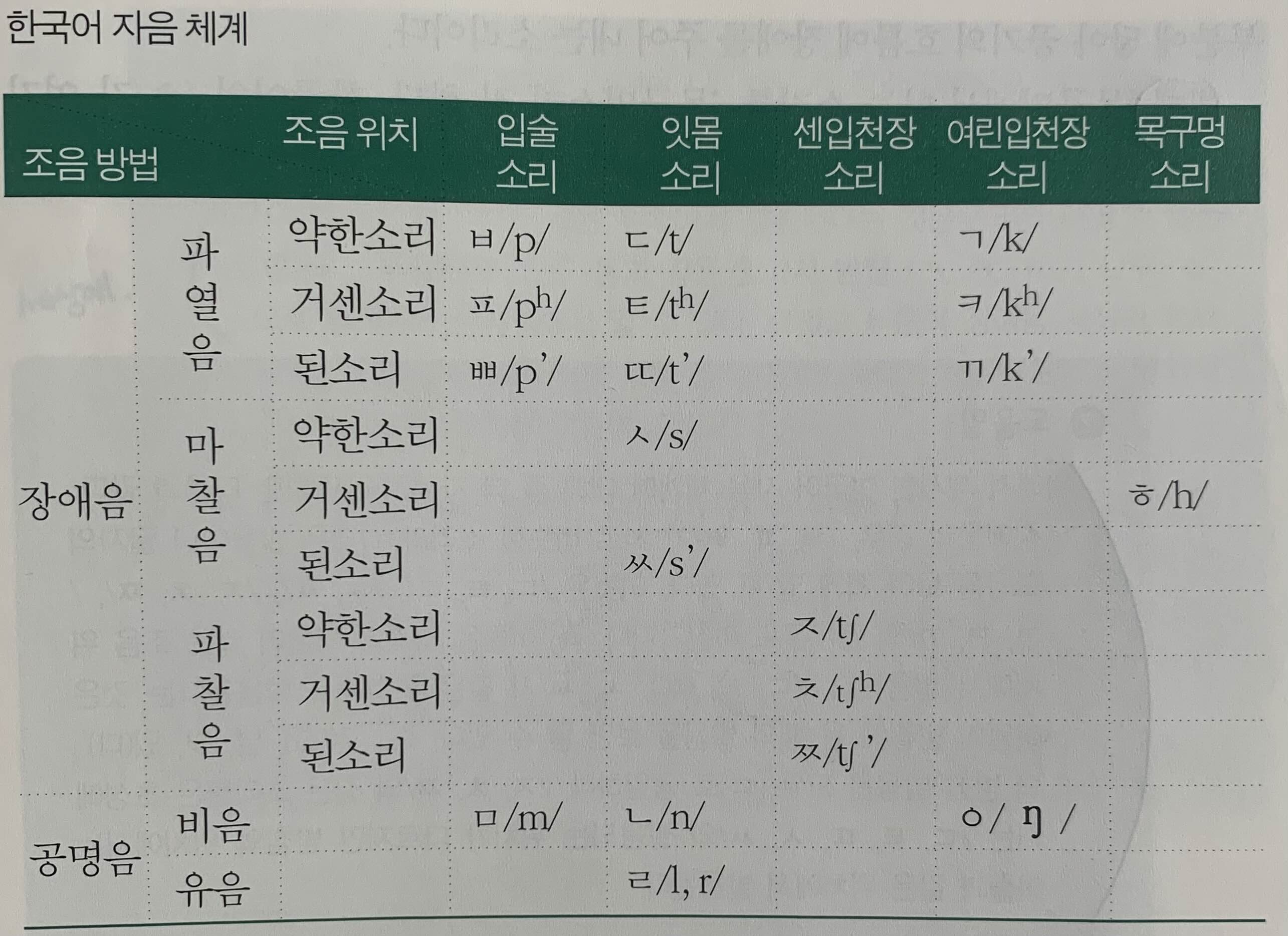 위에서 제시한 한국어 자음 체계에 대해 좀 더 자세히 설명하면 다음과 같다.